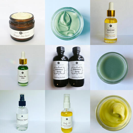 This facial serum has calming properties which support sensitive, combination or acne prone skin. A few drops of this beauty serum combined with a facial toner or hydrosol will seal in the moisture, leaving your skin feeling soft, smooth, silky and looking radiant. Made with organic oils of Jojoba, Pomegranate, Carrot, Meadowfoam, and infused with beautiful and aromatic Blue Tansy essential oil.Soothing Blue Rose Cream — A rich cream perfect for dry, sensitive or mature skin types. Deeply moisturizing and nourishing. Cools and balances the pores. The intoxicating aroma of Blue Tansy combined with Rose make this cream a daily ritual your skin will crave. Made with organic Sweet Almond oil, Jojoba oil, Coconut oil, Rose Hydrosol, Aloe Vera gel, beeswax, rosemary extract, Blue Tansy EO, Rose absolute.Soothing Blue Balm — A luxurious balm for radiant, beautiful skin. This silky moisturizer includes Baobab oil, a rich source of Omega fatty acids that soothe sensitive or inflamed skin. Blue Tansy also soothes and helps minimize inflammation and regenerates the skin at a cellular level. The anti-inflammatory properties of this beautiful blue oil combined with Jojoba, Baobab, Avocado oils, unrefined shea butter and cocoa butter make this balm ideal for all skin types, on face, neck, hands and body.Rose Chamomile Face Wash — Facial cleanser made with organic castile soap, Chamomile & Rose hydrosols, Calendula extract, Rose absolute and essential oil of Blue Chamomile. It feels good, works great for all skin types and smells so lovely.Chamomile Rose Face Toner — Made with floral hydrosols of Chamomile and Rose, witch hazel and essential oils of Chamomile and Rose.BODYCalendula Chamomile Cream — A rich herbal cream made with organic calendula & chamomile flowers solar infused in Sweet Almond oil and blended with nourishing shea & cocoa butters for soothing & healing dry skin, rashes & delicate, sensitive skin. Excellent for use overnight on face and eyes. Wonderful for use on the body as well.Whipped Blue Body Butter — Soft, silky and fluffy body butter blended with the beautiful and aromatic Blue Tansy essential oil. It's the ultimate moisturizer and perfect for all your dry places – face, hands, belly, feet, cuticles, lips, legs, elbows and even your hair.Calendula Frankincense Body Oil — An aromatic body + massage oil, handmade with nourishing oils infused with Calendula flowers from my garden and powdered Frankincense resin. Sweet Almond, Jojoba and Sunflower oils combined with this balancing and grounding blend of EOs make this body oil a sensory delight that leaves your skin feeling smooth and smelling great!Bug Off Spray — Effective repellent made with essential oils of Citronella, Cedarwood, Lavender, Lemongrass, Geranium & Rosemary, Clove, Yarrow tincture, Jojoba oil, alcohol.Bug Bite Balm — For those itchy bug bites from mosquitoes, flies, ticks or bee stings. Calendula soothes itching and inflammation, and promotes healing on fresh bites and stings. You can also use it as a repellent, since It’s wonderfully scented with an EO blend formulated to keep bugs away from you too.Poison Ivy Relief — Topical skin treatment for healing poison ivy rashes and irritated skin. Made with Jewelweed, Calendula, Plantain, Comfrey, Witch Hazel, Isopropyl alcohol. For external use only.AROMATHERAPYHydrosols in season — Lemon balm, Lavender, Tulsi, Frankincense, Geranium, HelichrysumImmune Boom Spray — A natural alternative to many of the chemical-filled & toxic bacteria fighting products on the market. This spray can be used in many ways to shield yourself and keep things clean due to its anti-bacterial, anti-fungal & anti-viral properties.APOTHECARYCalendula Salve — Ideal for sensitive skin, for soothing dry skin, rash, burns and inflammation. It can be used on anything from dry lips to hands and body.EDIBLESHibiscus Summer Tea —Hibiscus, Rose hip, Lemongrass, Orange Peel and Spearmint.Double C Tea with Elderberry — Rose hip, Lemon balm, Lemongrass, Oatstraw, Nettles, Red raspberry leaf, Cinnamon chips & Orange peel, Elderberry.Holy Basil Tea — Hand harvested and dried from our garden.Elderberry Syrup— Organically grown dried Elder berries, Ginger root, Cardamom, spring water, local raw honey, brandy.These legacy products are now featured seasonally in our subscription boxes. Please email below with any questions. Thank you!
